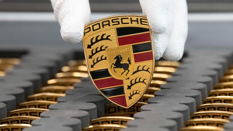 Un logo Porsche dans l’usine de Stuttgart en Allemagne. – THOMAS KIENZLE / AFP