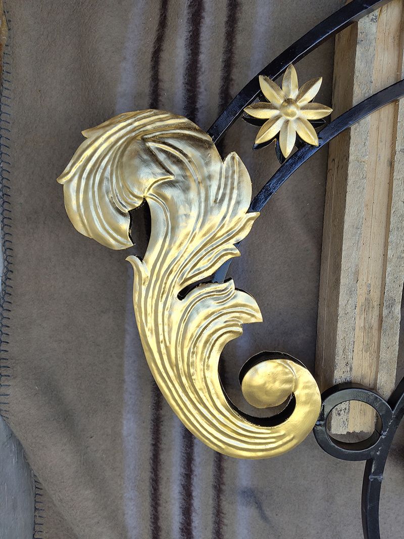 Sur notre enseigne, un motif en inox repoussé recouvert à la feuille d’or attire tous les regards.