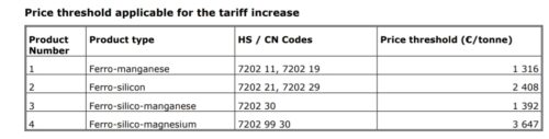 Excellente nouvelle pour les producteurs FeSi / FeSiMg/ FeMn / FeSiMn européens!