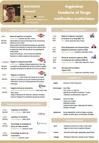 CV Clément Bastardis ESFF 2025 / Job en Suisse ou Haut-Rhin.