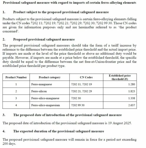 Une commission européenne travaille actuellement sur des mesures de protection pour limiter les importations de Ferro-Manganèse / Ferro-Silicium  / FeSiMg / FeSiMn.