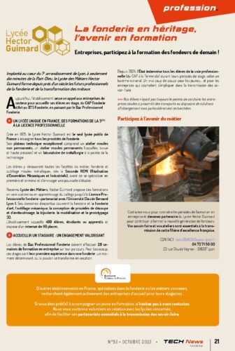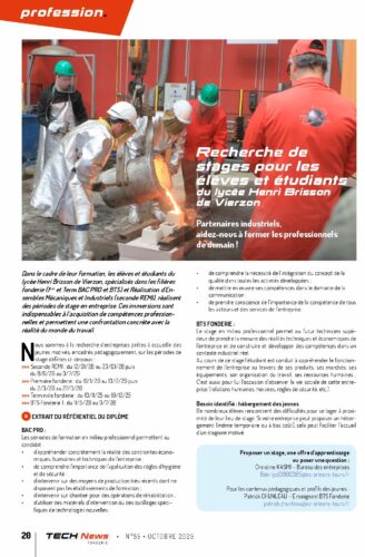 Partout en France, les lycées formant aux métiers de la fonderie et de la transformation des métaux recherchent des entreprises prêtes à accueillir des élèves et étudiants en stage.