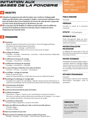 FORMATION CYCLATEF de l’ATF : Initiation aux bases de la fonderie