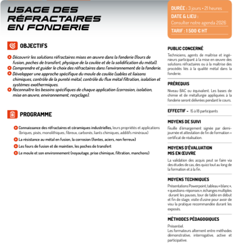 Usage des refractaires en fonderie – Niederbronn-les-Bains, du 26 au 28 mai 2026.