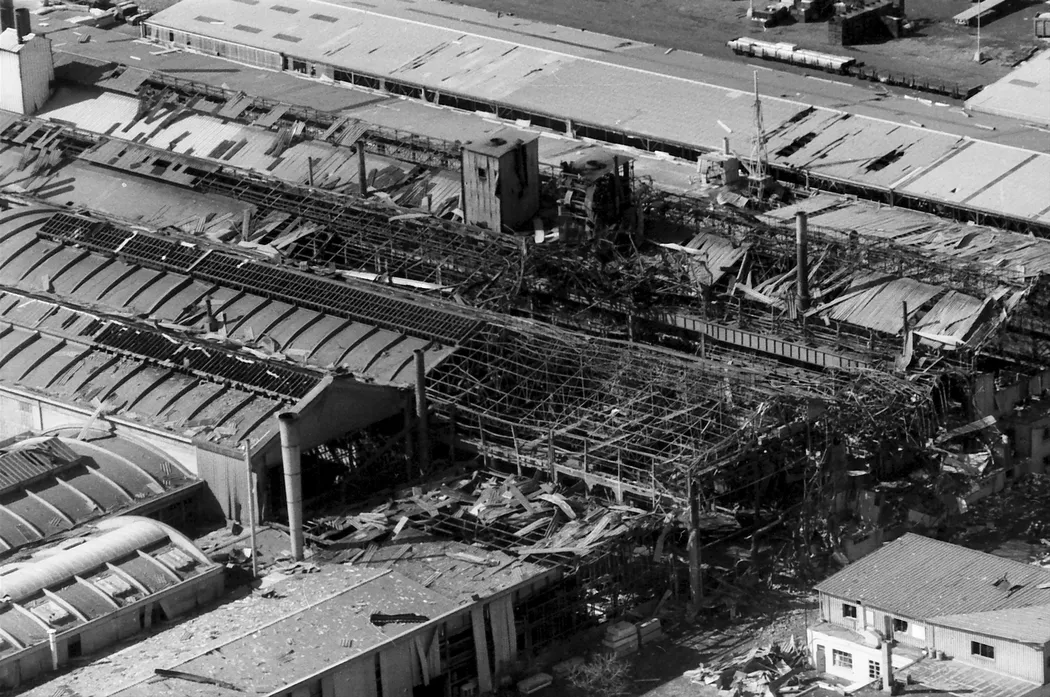 Quatre décennies après cette explosion causée par la foudre, il garde en mémoire sa sortie d’un bâtiment ravagé. « Il y avait des tôles qui volaient de partout avec le vent. » Olivier jette alors un œil derrière lui. « Les bâtiments étaient éventrés, il n’y avait plus aucun carreau dans l’usine. » Tout avait été soufflé. Olivier se regroupe avec les salariés présents à ce moment dans l’usine près du laboratoire.