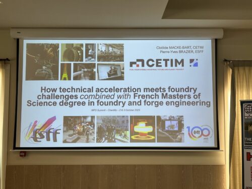 Pierre-Yves BRAZIER, directeur de l’École Supérieure de Fonderie et de Forge et Clotilde MACKE-BART, responsable R&D au Cetim – Centre technique des industries mécaniques ont participé hier au World Foundry Summit organisé par The WFO (World Foundry Organization) et ATF – Association Technique de Fonderie qui se tenait à Chantilly, dans l’Oise.